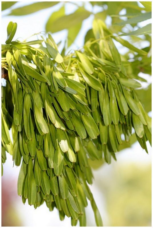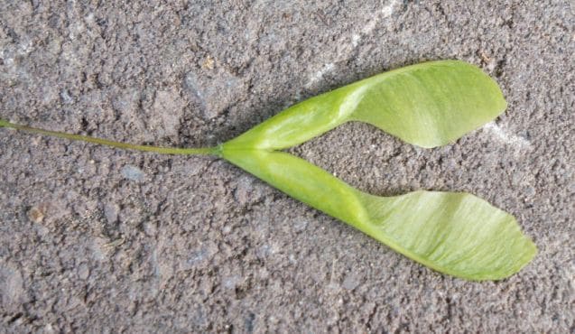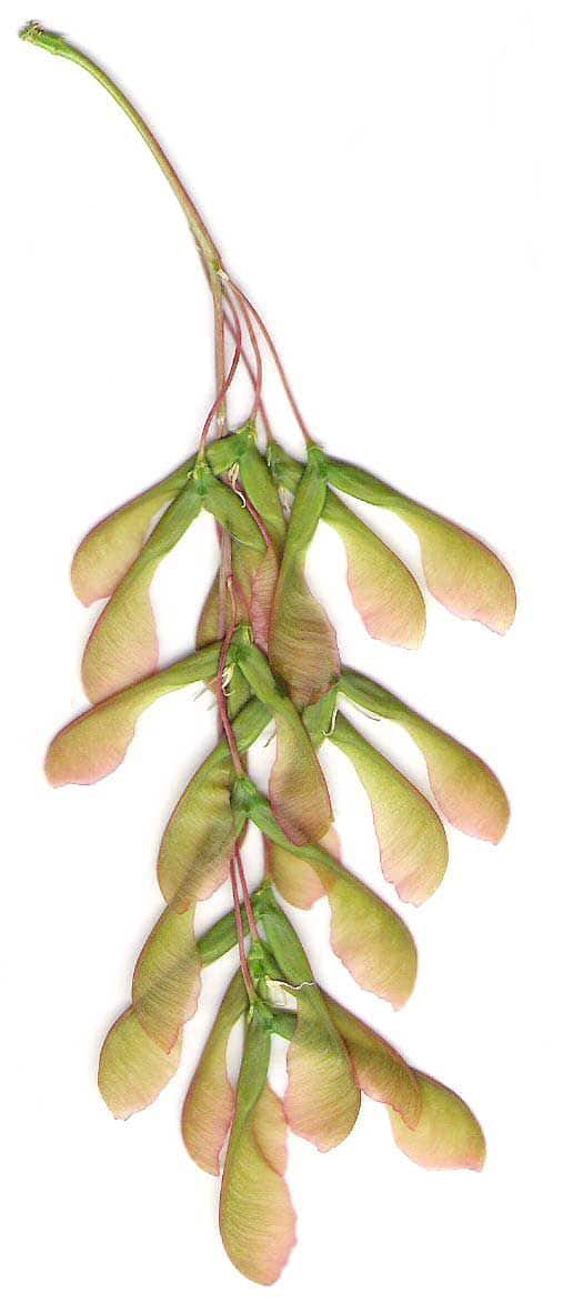 Les samares de l’Acer negundo apparaissent au début de l’été, mais restent sur l’arbre jusqu’à la fin de l’automne, voire jusqu’à l’hiver.